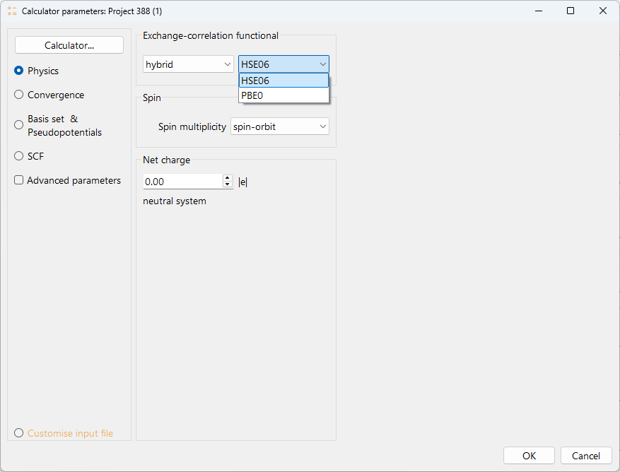 Physics: This category includes parameters related to the exchange correlation functional and spin. For more details, refer to section Quantum ESPRESSO Parameters: Physics.