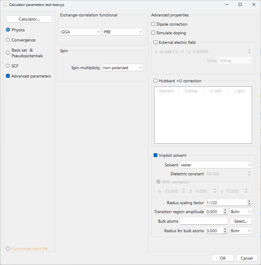 Fig. 29 Calculator widget advanced parameters, implicit solvent.#